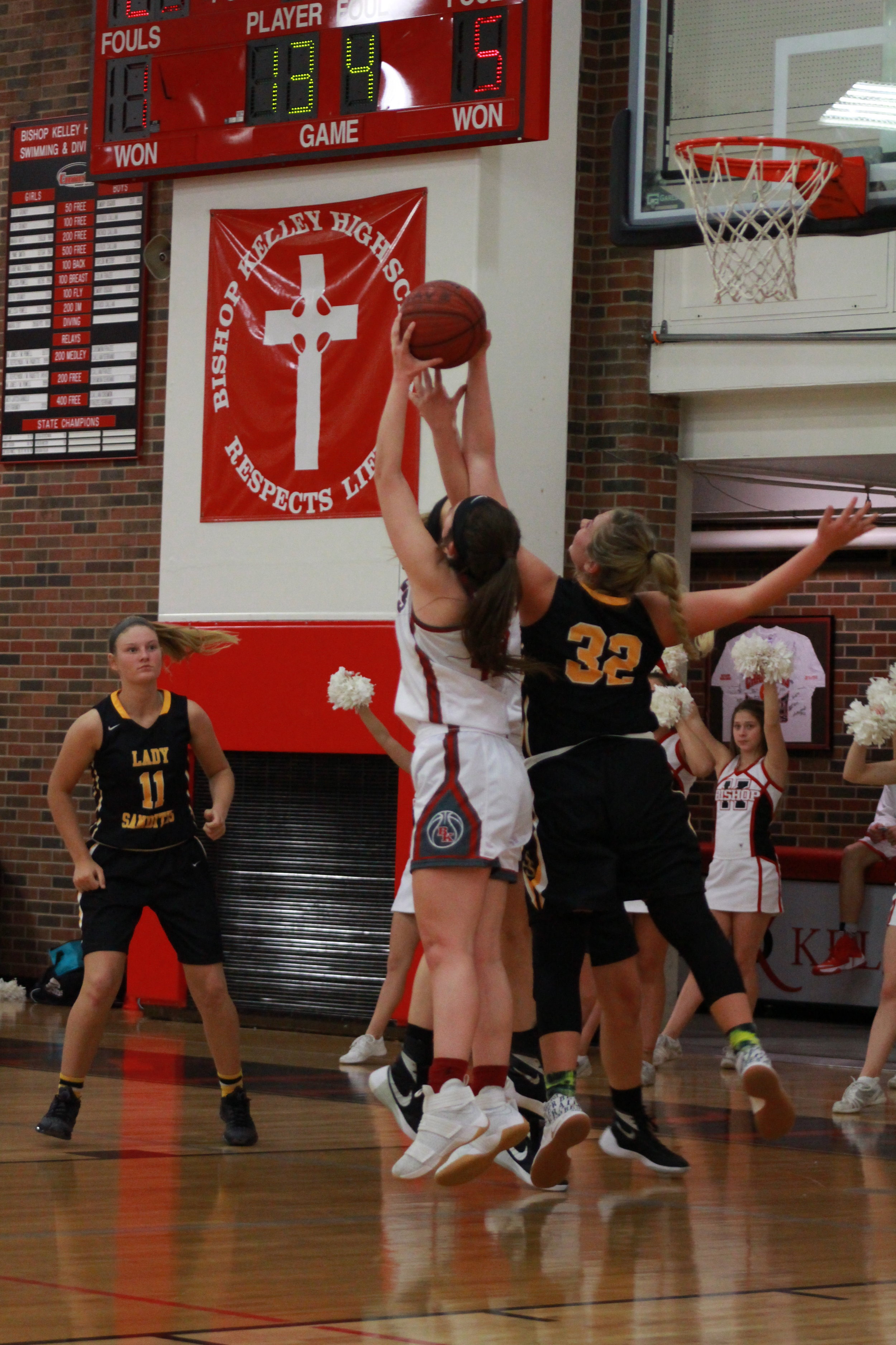 The home team had their biggest output in the third quarter, scoring nearly half of their total offense. Sophomore Destiny Johnson scored all twelve of her points in the second half, including the first two Sandite field goals of the third quarter. Oklahoma State University softball signed senior Sydney Pennington got in on the action with back-to-back layups, one coming on a steal. Kelley's Micaela Martin followed it up with a pair of her own, and the two teams exchanged blows from there.