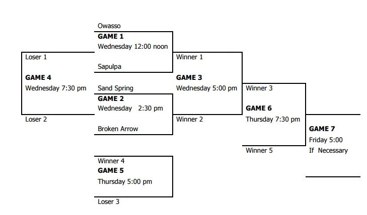The tournament is double-elimination, and from there the Sandites will take on either Sapulpa (6-21) or Owasso (25-6). Sapulpa shouldn't pose much difficulty, as the Sandites have already defeated their Highway 97 rivals three times this season by a combined score of 26-7.