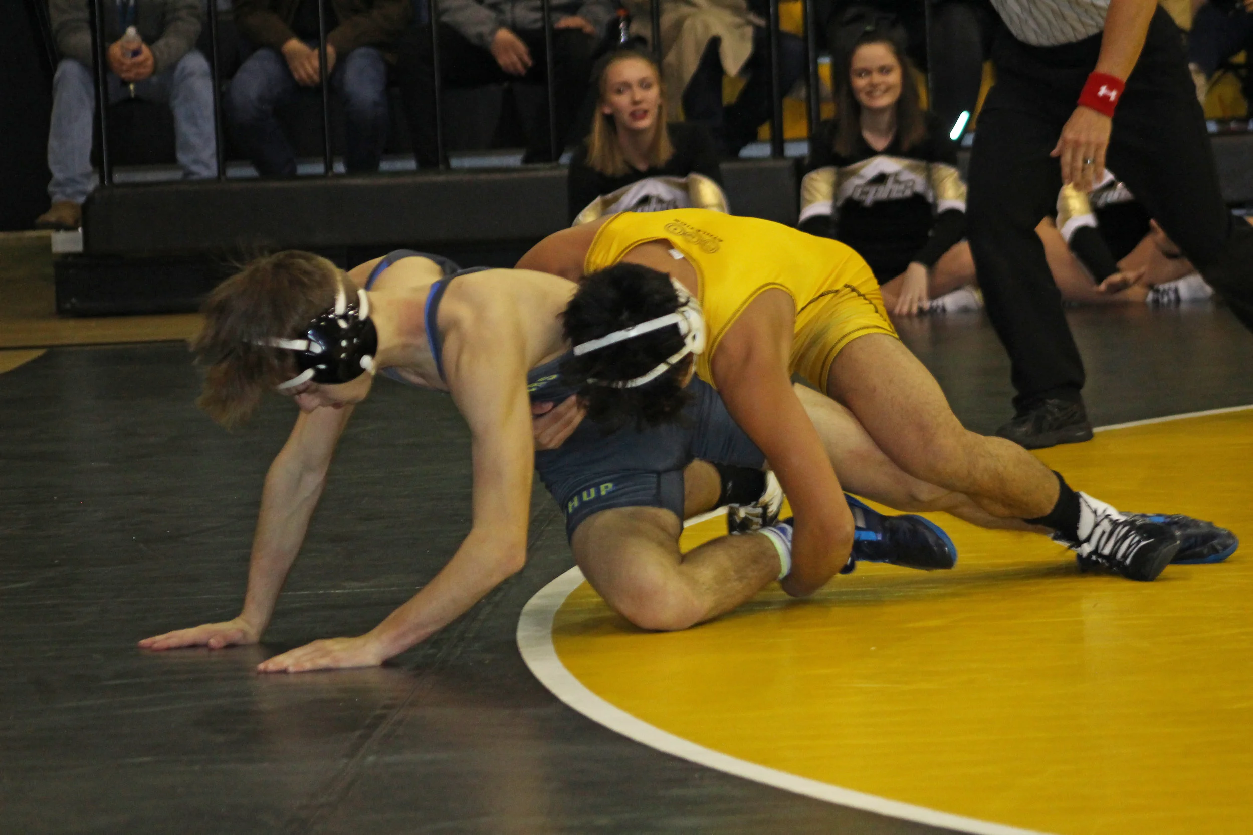 Freshman Hayden Cramer (1-1) picked up his first win of his high school career at 195, and he went the distance to do it. After a scoreless first period, Cramer took a 1-0 lead over Aaron Veselak with an escape to start the second. Veselak did the same to start the third and caught Cramer by the leg. The Sandite was hobbling on a single leg for nearly thirty seconds before he managed to escape off the edge of the mat. Veselak was unable to catch him off guard again, and they went into sudden victory. With three seconds left Cramer got the takedown for the 3-1 victory.
