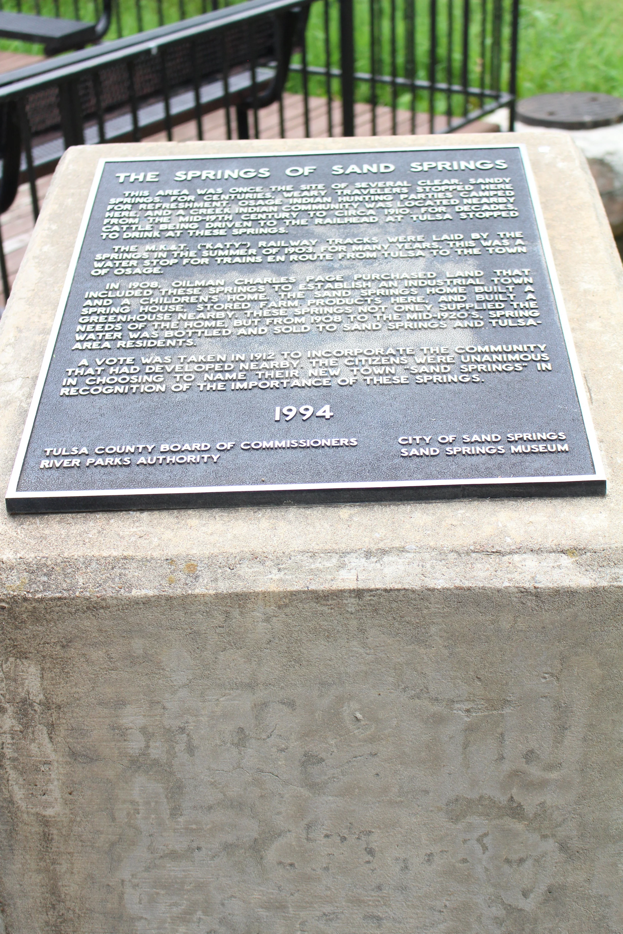 The trail runs past the last remaining site of the sandy springs from which the town of Sand Springs was named. The majority of the springs were destroyed during the construction of the Keystone Expressway. The Sand Springs Rotary Centennial Park features informative plaques telling the history of the site.